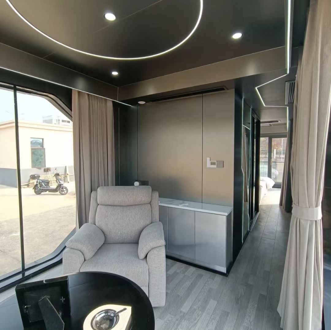 M5 модульная съемная космическая капсула с модульной единицы для быстрой сборки/разборки, она прочная, экологически чистая, а также звукореживая/тепловая изолированность. Ключевые точки продажи: низкая стоимость развертывания, настраиваемые темы и многократно используется. Идеально подходит для живописных отелей (расширение быстрого мощности), уникальные проживание в семье (тематический дизайн) и участки кемпинга (легкая установка в отдаленных районах), смешивание футуристической эстетики с практической жизни на свежем воздухе.